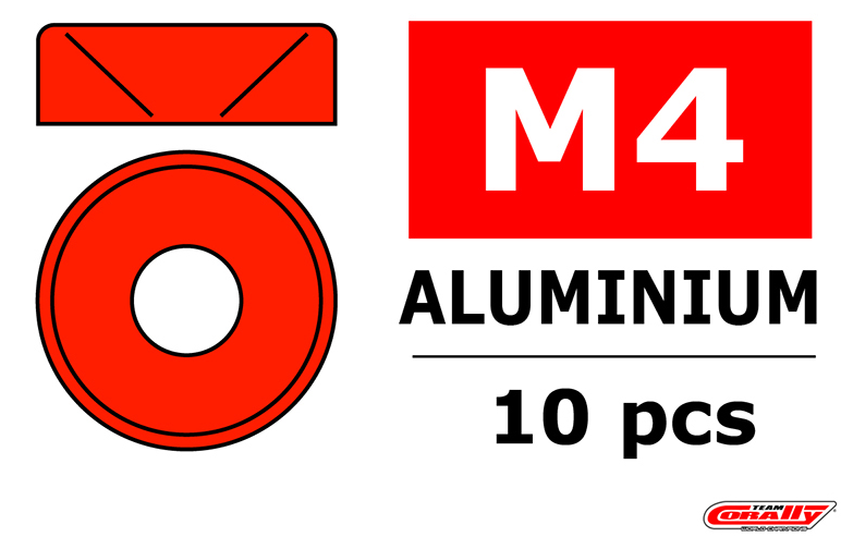 Team Corally - Aluminium Washer - for M4 Flat Head Screws - OD=10mm - Red - 10 pcs